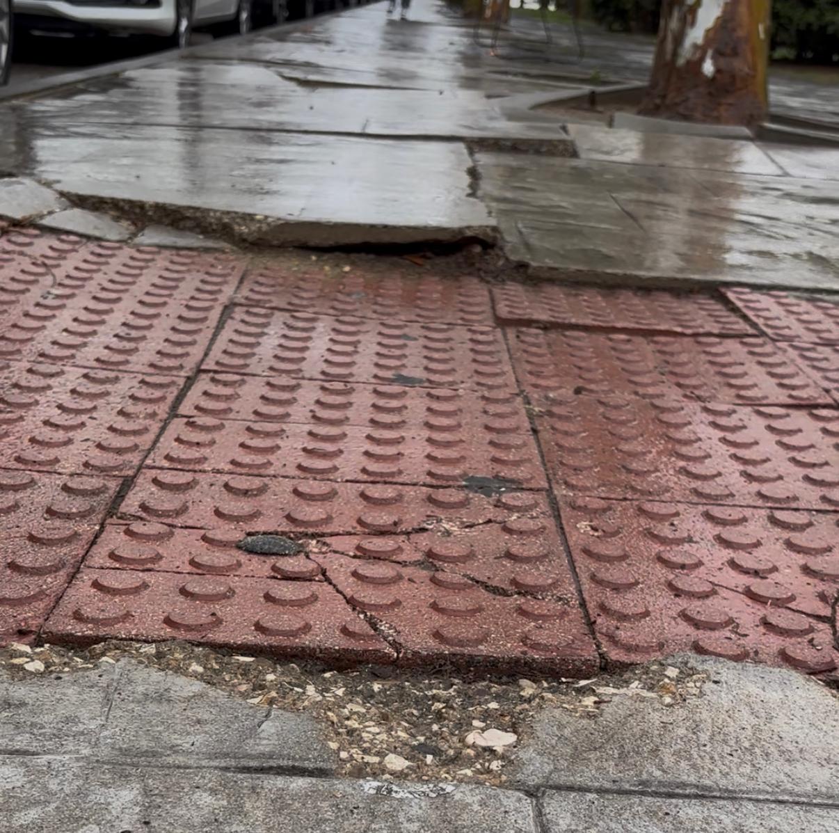 El acerado supone un riegos para los residentes, lleno de socavones y losas rotas