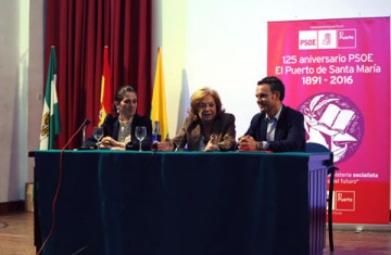Al término del acto de clausura del 125 Aniversario del PSOE de El Puerto, la máxima representante o...
